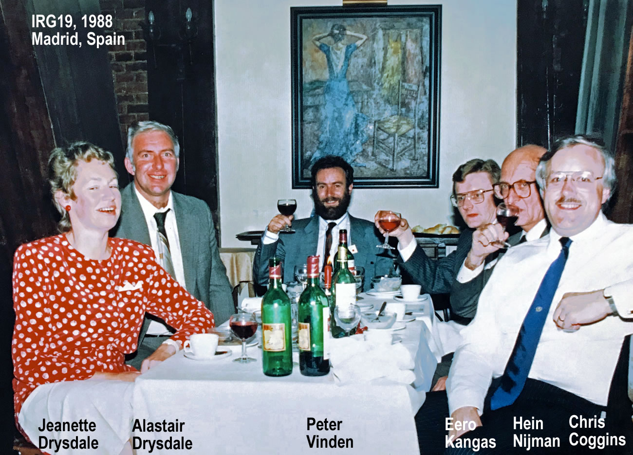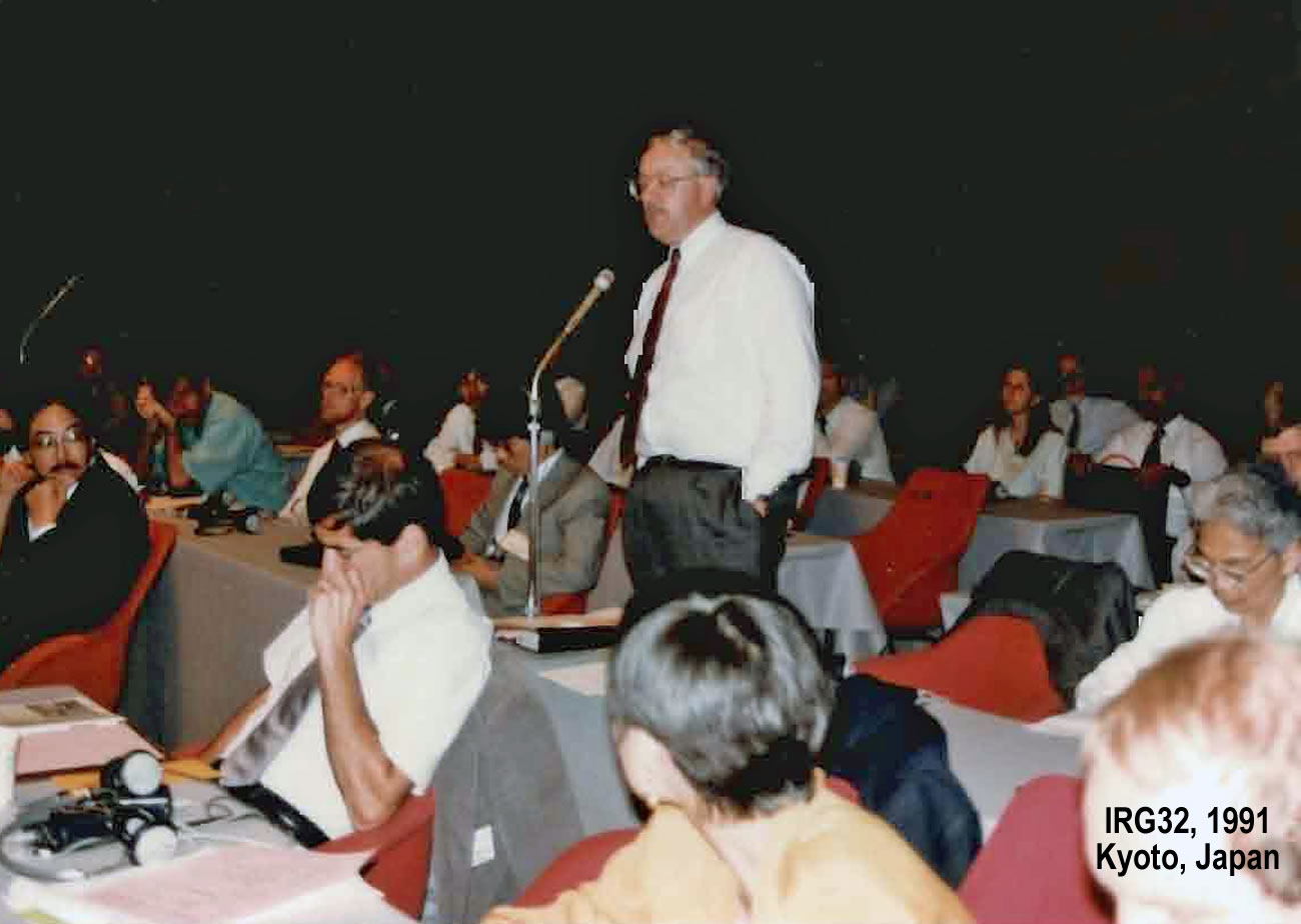 As Rentokil’s mycologist I then had an opportunity to join IRG which I did ahead of the IRG 8 meeting in 1976 in Wildhaus, Switzerland. I drove to Wildhaus with David Dickinson, Rod Eaton and John Levy and that was my introduction to IRG. I subsequently was able to attend IRG meetings in Peebles (IRG 10), Raleigh, North Carolina USA (IRG 11), Sarajevo, Yugoslavia (now Bosnia-Herzegovina) (IRG 12), Avignon, France (IRG 17), Lappeenranta, Finland (IRG 20), Kyoto, Japan (IRG 22), Harrogate, England (IRG 23), Maastricht, The Netherlands (IRG 29) and Cardiff, Wales (IRG 33). I also worked with Gerald Ozanne on the organisation of IRG meetings in the springs of 1990 to 2005 in Cannes, France focussed on environmental issues affecting wood preservation. I am now a Life-long IRG member.