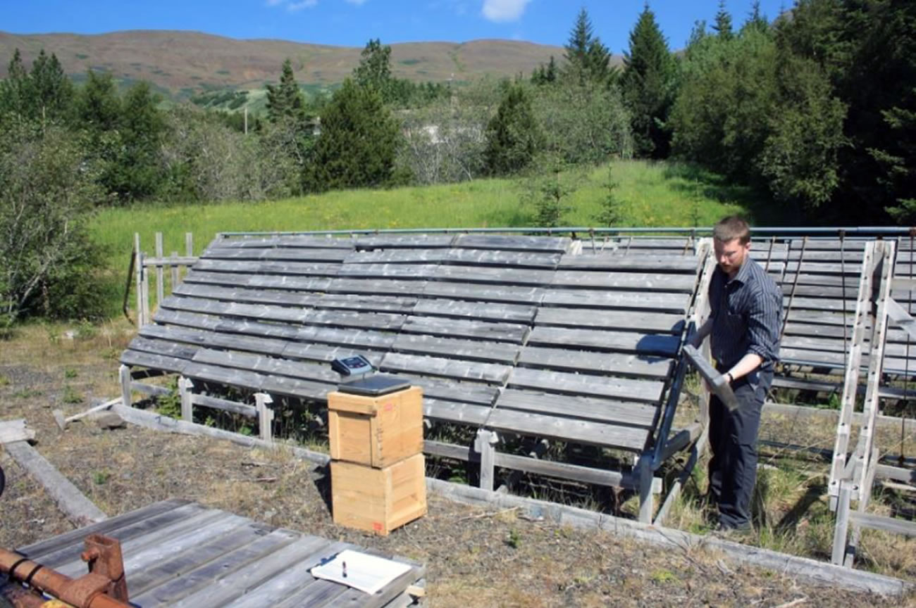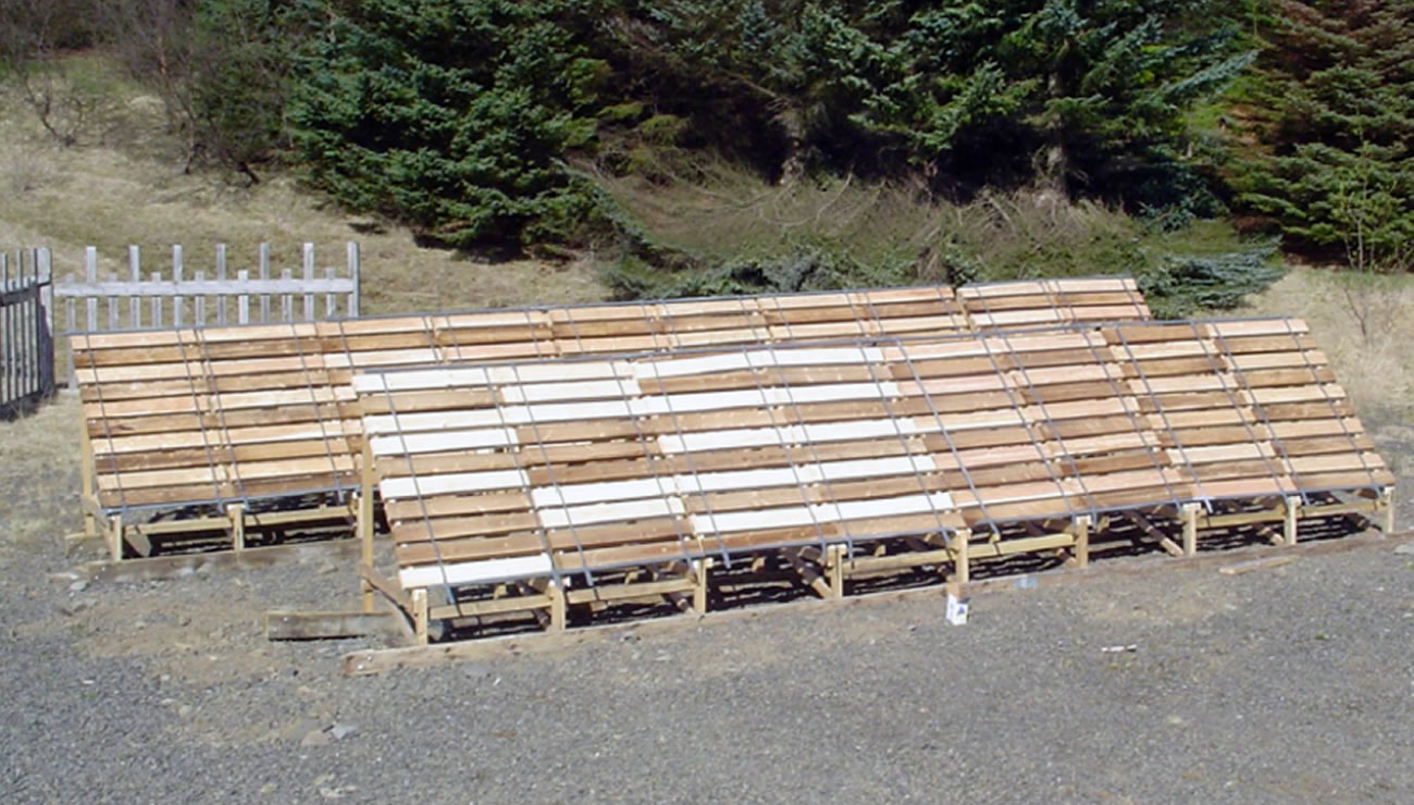 A natural weathering test established in Iceland to monitor color, checking and moisture fluctuations of the test material. The trial will also give information of the durability of heat-treated and untreated Larch, compared to Spruce and Pine.